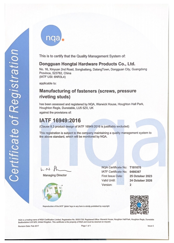 東莞市紅泰五金制品有限公司,公司占地六千多平方米,擁有五十多組螺絲機(jī)及六十臺自動車床設(shè)備。是一家專業(yè)設(shè)計、生產(chǎn)ISO、DIN、GB、JIS、ANSI、BS及客戶指定特殊要求的高精密五金緊固件的制造企業(yè)。